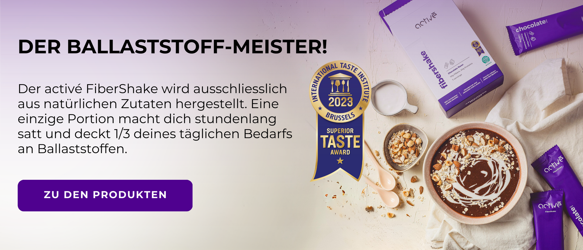 Die 10 g Ballaststoffmischung aus Flohsamenschalen, Inulin und Guarkernmehl deckt ein Drittel deiner täglich empfohlenen Ballaststoffzufuhr. Diese Ballaststoffe quellen durch die Flüssigkeit auf und sättigen dich für längere Zeit, sowie sorgen für deine Verdauung und die Gesundheit deiner Darmflora.